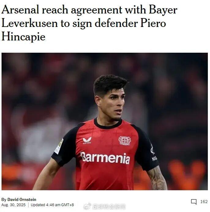 罗马诺发推:因卡皮耶将加盟阿森纳,here we go!交易形式为租借加选择性买断,租借费为600万欧元,选择性买断费用4600万欧元,总价5200万,勒沃库森有10%的二转分成。